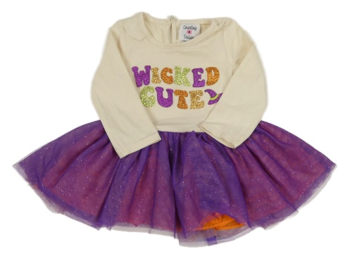 Smetanovo-fialové bavlněno/tylové šaty s nápisom