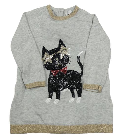 Sivé melírované svetrové šaty s kočkou z flitrů M&S