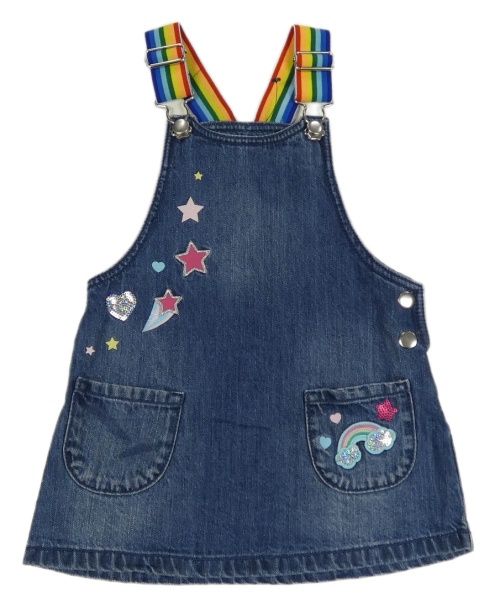 Tmavomodrá rifľová na traká sukňa s nášivkami F&F