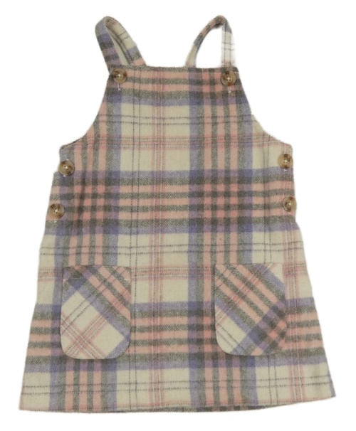Smetanovo-fialovo-svetloružová -tmavosivé kockované vzorované vlnené šaty PRIMARK