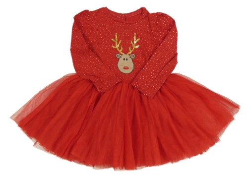 Červené melírované bavlněno/tyloé šaty so sobom a bodkami Mothercare