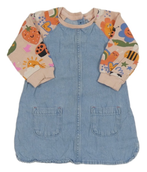 Světlemodro/růžové riflovo/teplákové šaty s obrázkami Next