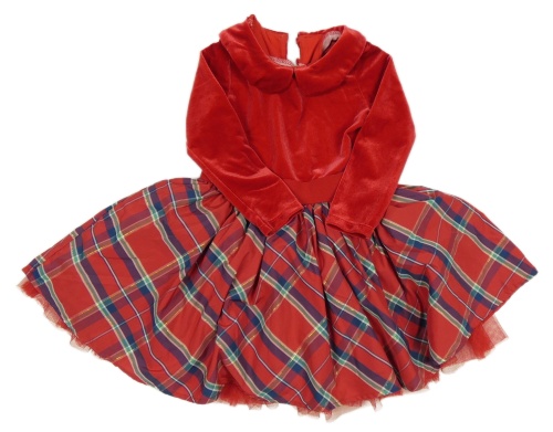 Červené zamatové šaty s kostkovanou sukní Dunnes