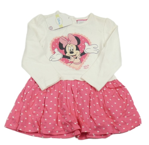 Nové - Smetanovo-ružové teplákovo/lehké šaty s Minnie a srdiečkami C&A