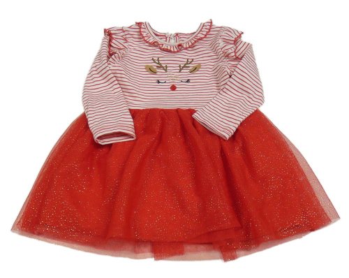 Bielo-červené pruhované šaty s ňufáčikom a tylovou třpytivou sukní Primark