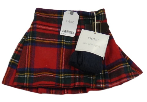 Nové - 2 set - červeno-čierna kockovaná vlnená sukně + pančuchy Next