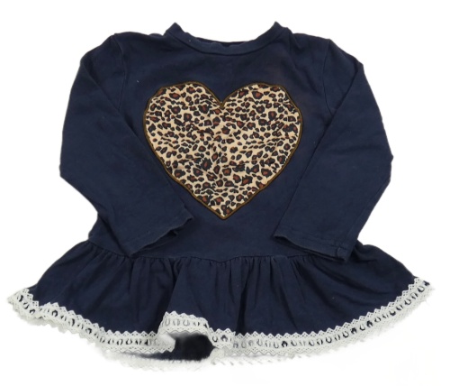 Tmavomodrá bavlnená šatová tunika so vzorovaným srdcem