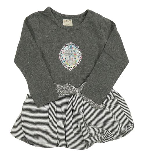 Tmavošedo-pruhované bavlnené šaty s klecí a trblietkami Kanz