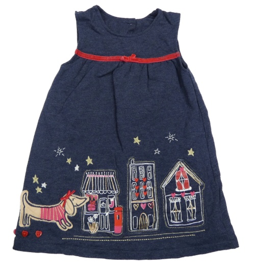 Tmavomodré teplákové šaty s domečky a jezevčíkem George