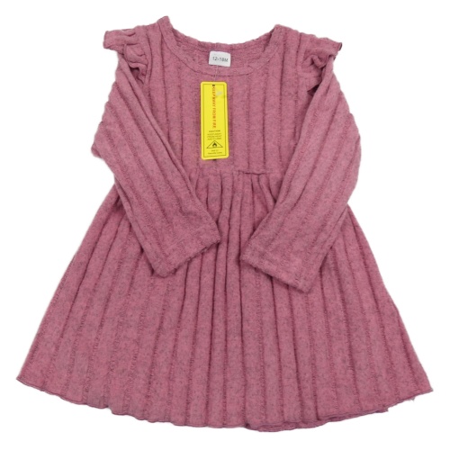 Nové - Tmavoružové melírované rebrované úpletové šaty s volánikmi