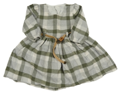 Šedo-khaki kockované šaty s opaskom