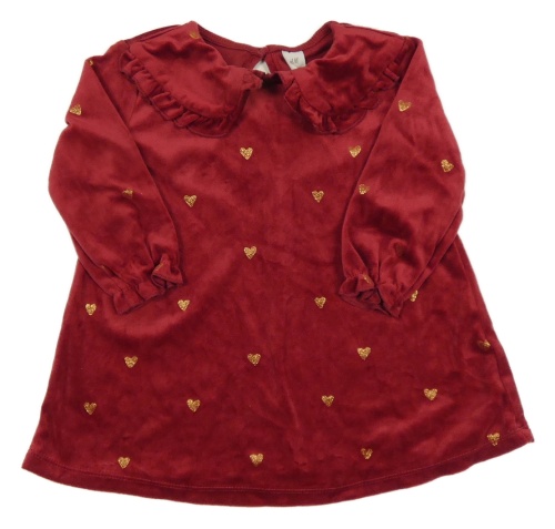 Tmavočervené plyšové šaty so srdiečkami a golierikom H&M