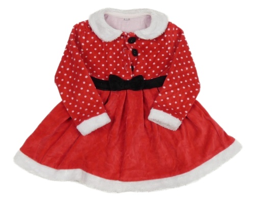 Červeno-biele zamatové šaty s mašlou a bodkami a golierikom a kožešinou