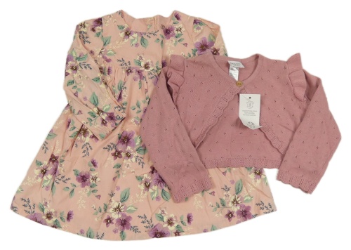 Nové - 2set - Ružové kvetované plátenné šaty + svetrové bolerko F&F