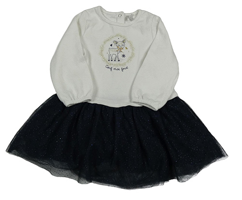 Bielo-tmavomodré teplákovo/tylové šaty so srnkou a trblietkami Orchestra