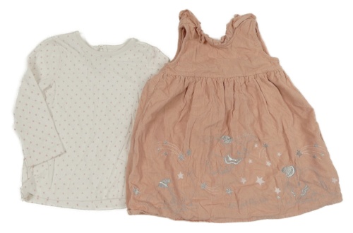 2 set - biele tričko s ružovými hvězdičkami + svetloružové menšestrové šaty s výšivkami George