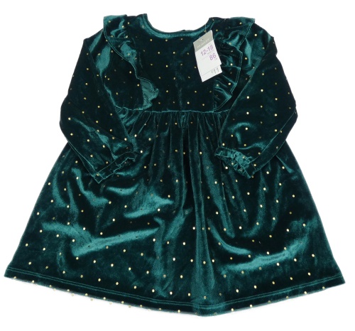 Nové - smaragdovo-zlaté bodkovaná é zamatové šaty s volánikmi PRIMARK