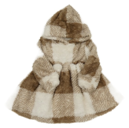 Bielo-hnedé kockované chlpaté šaty s kapucňou Shein