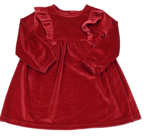 Červené lesklé zamatové šaty s volánikmi St. Bernard