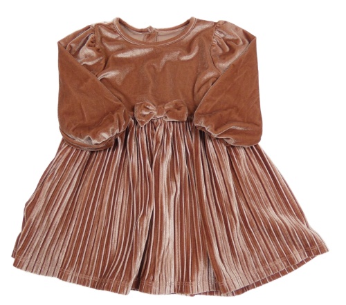 Staroružové zamatové šaty s mašlou a plisovanou sukní Dunnes Stores