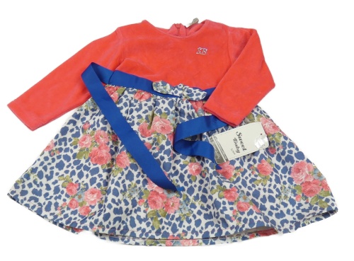 Nové - Neónově ružovo-bielo-modré zamatové šaty so vzorovanou sukní
