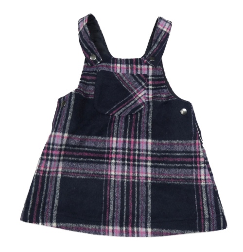 Tmavomodro-ružovo-biele kockované vlnené na traké šaty Nutmeg