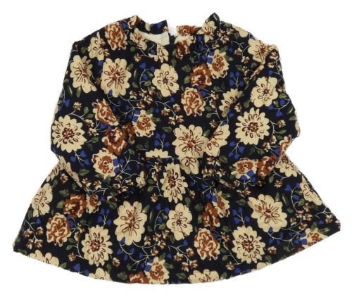 Čierno-béžovo-modrá kvetovaná šatová tunika
