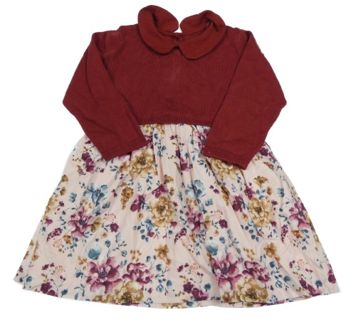 Vínovo-ružové svetrovo/plátěné šaty s kvetmi a golierikom Tu