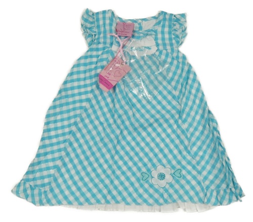 Nové - Azurovo-biele kockované trblietavé šaty s kvetinami