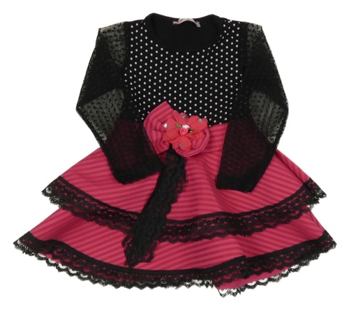 Čierno-fuchsiové šaty s čipkou a kvetinou