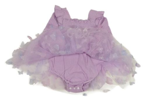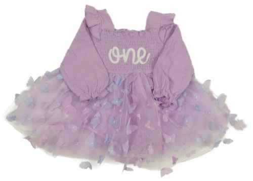 Lila mušelínovo/tylové šaty s nápisom a motýly