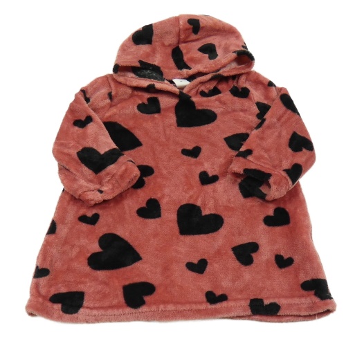 Jahodové plyšové šaty so srdiečkami a kapucňou SHEIN