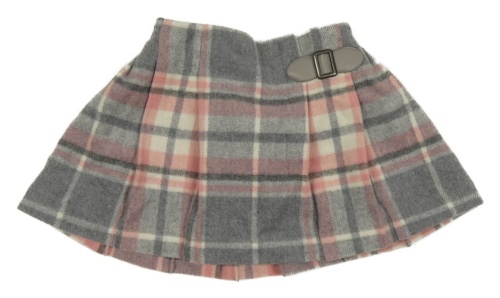 Sivo-bielo-ružová kockovaná vlnená sukňa s přezkou Next