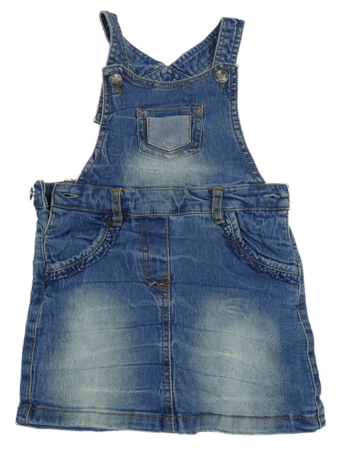 Modrá rifľová na traká sukňa s volánikmi Topolino