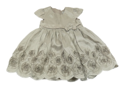 Svetlosivé zdobené šaty s mašličkou. Tu