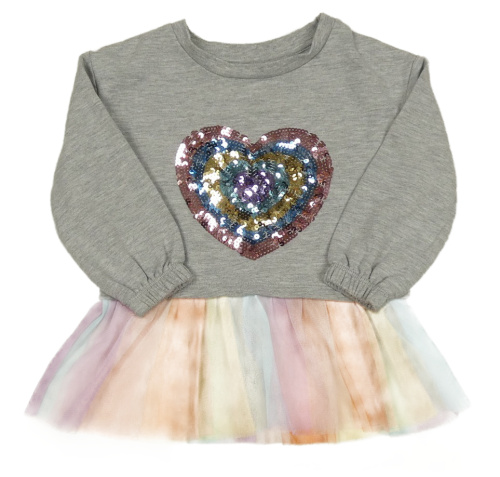 Sivé teplákové šaty s barevným tylem a srdcem z flitrů Tu