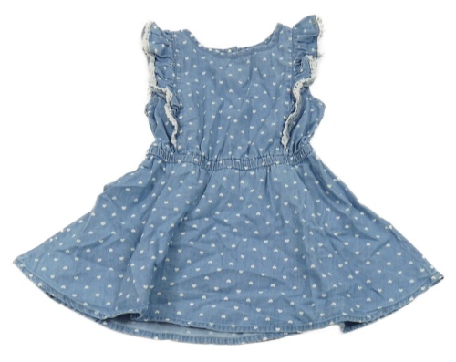 Modré ľahké rifľové šaty so srdiečkami a madeirou Topolino