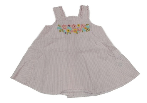 Svetloružové pruhované krepové šaty s výšivkami květů