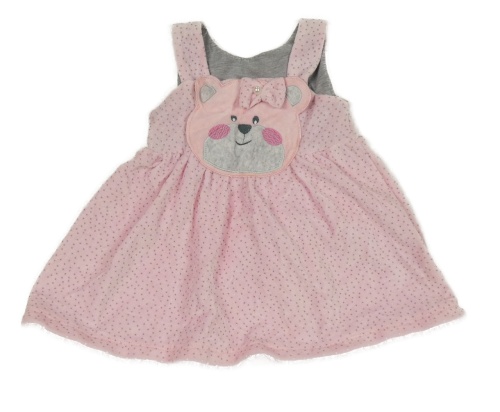 Svetloružové bodkovaná é šaty s medvedíkom