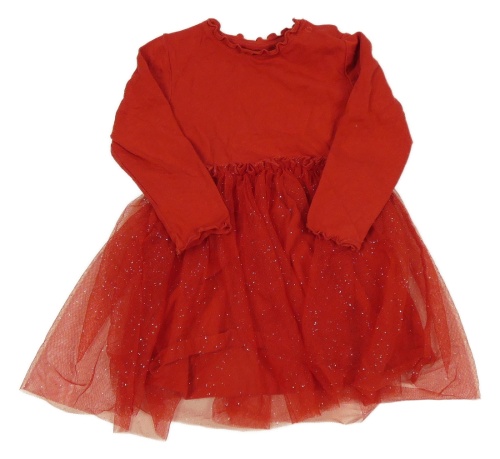 Červené bavlněno/tylové šaty s trblietkami H&M