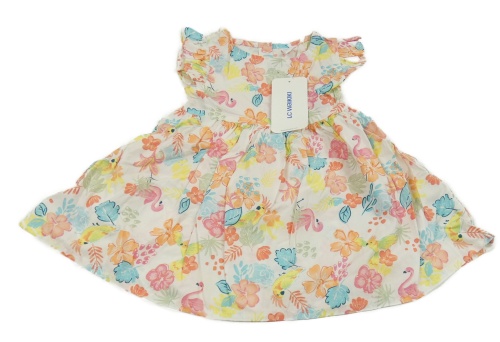 Nové - Biele plátenné šaty s plameňáky a kvetmi LC Waikiki