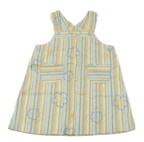 Žlto-modro-oranžové pruhované rifľové na traké šaty s kvietkami