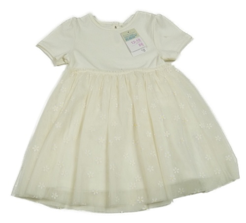 Nové - smotanové rebrované šaty s tylem s kvetmi PRIMARK