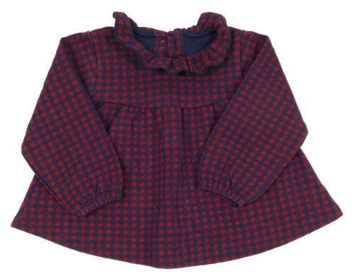 Tmavomodro/červená kockovaná šatová tunika s volánikom George