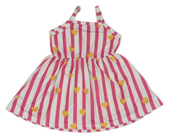 Bielo-fuchsiové pruhované šaty so srdiečkami