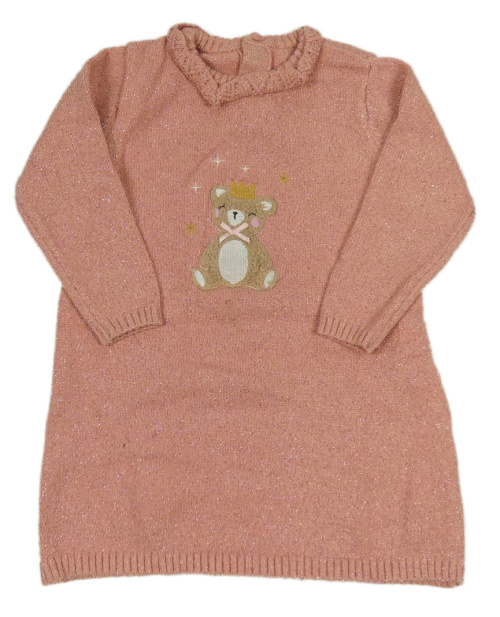Ružové trblietavé svetrové šaty s medvedíkom Nutmeg