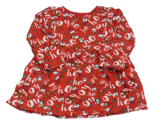 Červené šaty s nápismi a vánočními obrázky Peacocks