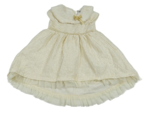Smetanovo-zlaté kvetované šaty s kožušinovým golierikom