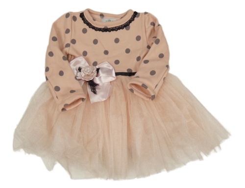 Ružové teplákovo/tylové šaty s bodkami a mašlou