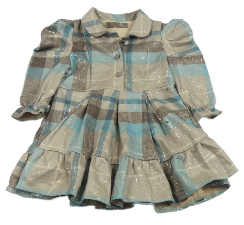 Béžovo-modro-hnedé kockované šaty s golierikom